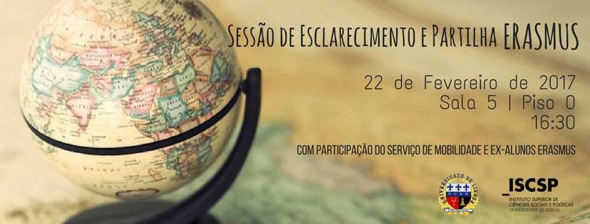 O Núcleo de Gestão de Recursos Humanos (NGRH) do Instituto Superior de Ciências Sociais e Políticas (ISCSP) vai organizar uma sessão de esclarecimento e partilha Erasmus amanhã, dia 22 de fevereiro, na sala 5 do piso 0, pelas 16h30.