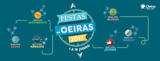 As Festas de Oeiras 2017 começaram ontem, dia 1 de junho, e vão prolongar-se até dia 18, por todo o município de Oeiras. Deejay Télio, Matias Damásio, Quim Barreiros, Virgul, Dois Brancos e um Preto e GNR são os grandes nomes do festival, que mantém a entrada gratuita. Este ano, o festival foi segmentado em várias “Rotas” como a Rota da Música, a Rota dos Miúdos, a Rota das Artes, a Rota dos Arraiais, a Rota Jovem e a Rota do Movimento. Muitas são as novidades para a edição deste ano.