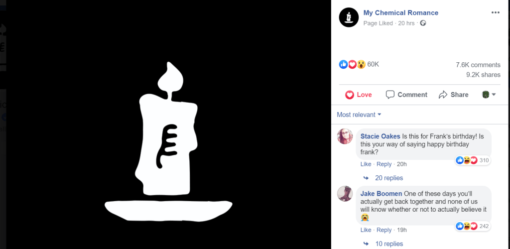 Posteriormente, na página do Facebook da banda, foi mudada a foto de perfil para a de uma vela branca em fundo preto, com um símbolo: