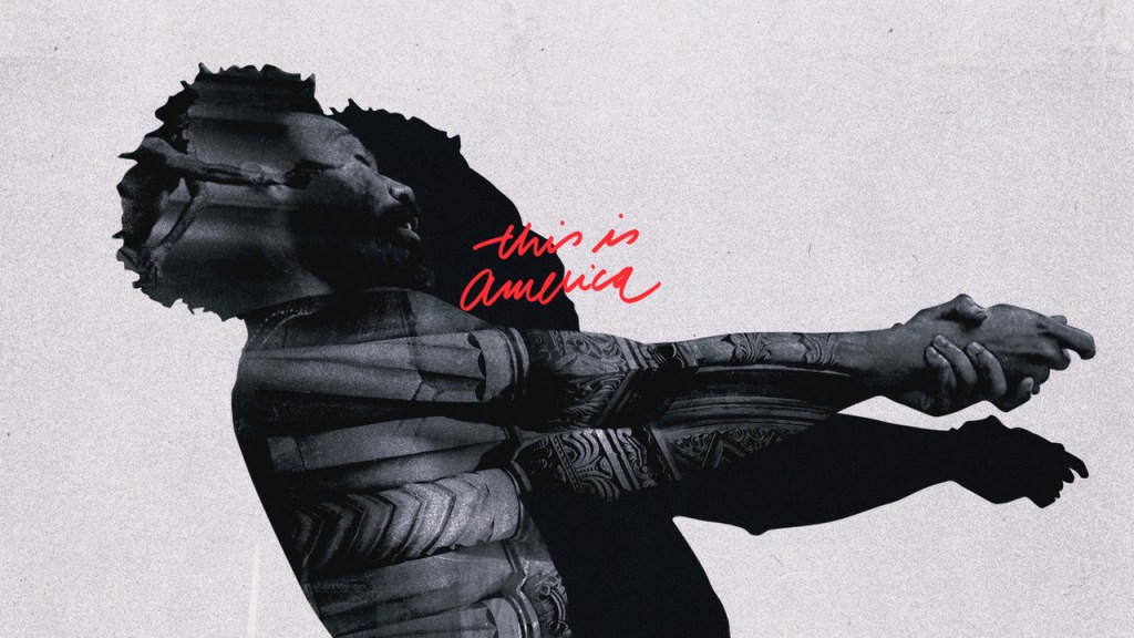 No final destes versos, no vídeo, o homem que víamos tocar tem um saco na cabeça e é alvejado. Assistimos ao primeiro tiro e, logo a seguir, o rapper coloca a arma cuidadosamente num pano vermelho, pano este que pode estar associado aos conservadores republicanos, enquanto o corpo apenas cai e é arrastado, mostrando que nos EUA uma arma vale mais que uma vida, apoiado na entrada do verso “This is America”. Em adição, é interessante a referência feita quando Gambino dispara, ele fá-lo na posição de Jim Crow, uma caricatura feita de uma personagem interpretada por um homem branco pintado de negro, algo conhecido como blackface, que ridicularizava o negro e que até teve nome nas leis de segregação americanas, Jim Crow Laws.