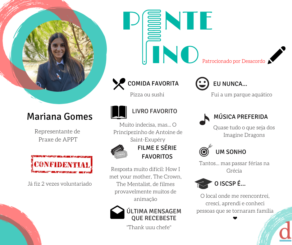 Conhece a representante de Praxe de Administração Pública e Políticas do Território, Mariana Gomes. Fica a saber mais sobre esta Mestre, os seus planos para o futuro e as suas recordações dos anos passados no ISCSP.