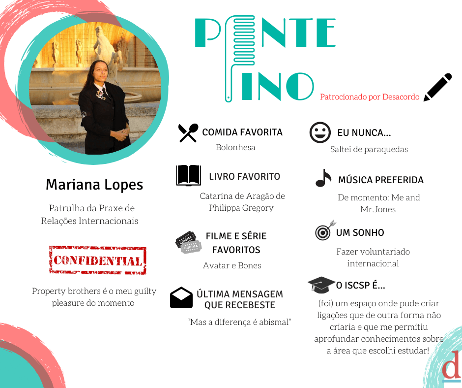 Fica a conhecer a patrulha Mariana Lopes, mais um membro da Praxe de Relações Internacionais.