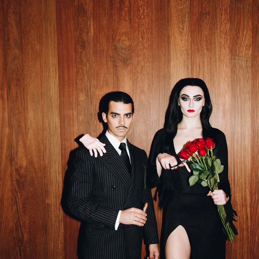 Um casal muito famoso e que transpira o Halloween é Gomez e Mortícia Addams. Eles são a personificação do terror, humor negro, romance e glamour gótico. Já para não falar que Joe Jonas e Sophie Turner arrasaram com esse mesmo look.