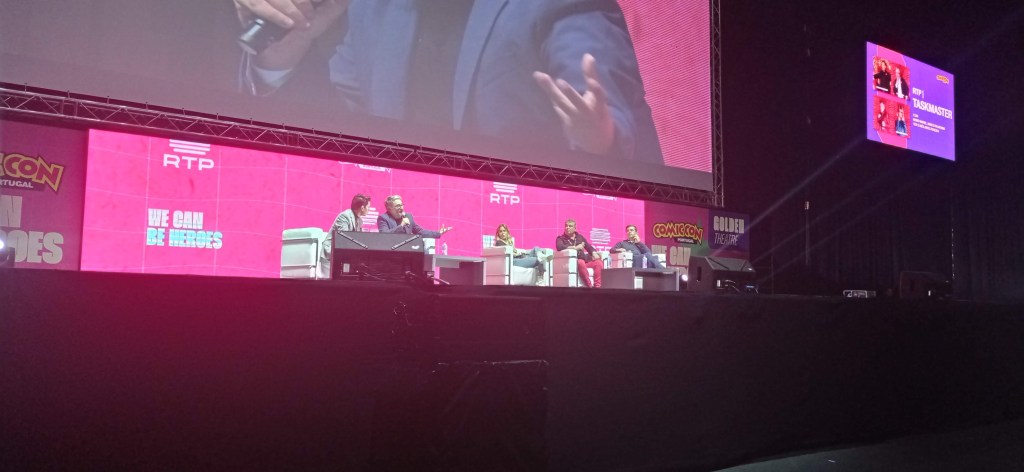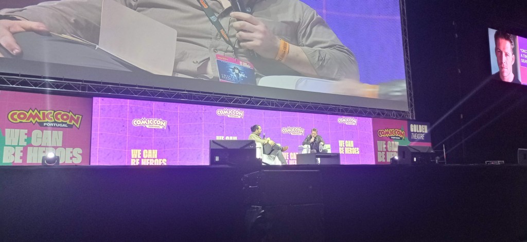 Tivemos também, no palco do Golden Theatre, Sean Maguire da série, disponível no Disney+, “Once upon a time” às 17:45, que nos falou de como foi trabalhar com a atriz Lana Parilla e a honra que foi interpretar um personagem como o Robin dos Bosques.