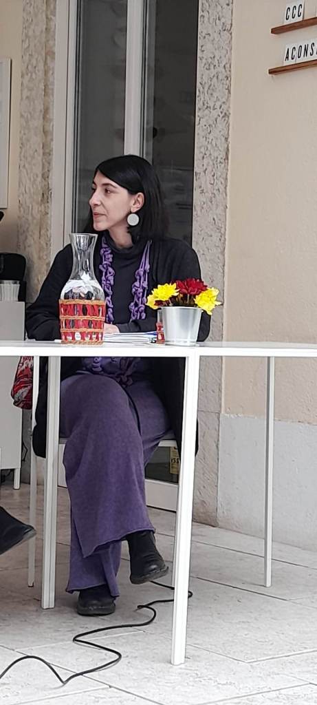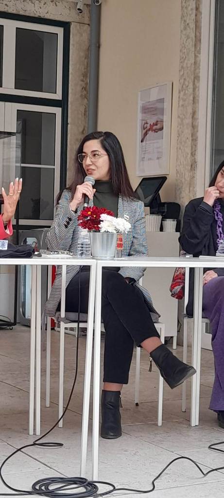 A terceira convidada a receber a palavra foi Arianna Borelli, médica e ativista, fundadora da Organização Humans Before Borders (HuBB) e trabalha em Portugal com ONGs que dão apoio a migrantes.