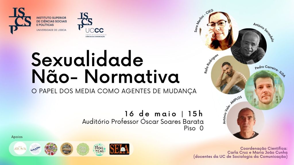 A conferência “Sexualidade não normativa: o papel dos media como agentes de mudança” terá lugar no ISCSP, dia 16 de maio às 15 horas no auditório Óscar Soares Barata (piso 0).
