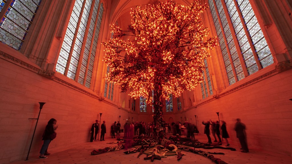 Dentro da MAAT Central está exposta a “Árvore da Vida” (2023). Esta tem cerca de 14 metros e mais de 140 mil folhas bordadas, cobertas com pequenas lâmpadas LED. Esta mágica obra foi inaugurada em abril deste ano, na Sainte-Chapelle, nos arredores de Paris.
