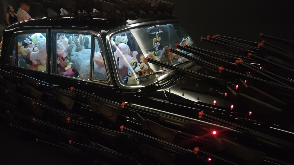 Ao prosseguir em direção à próxima sala, vamos encontrar Drag Race (2023) e War Games (2011), duas obras cujo protagonista é um carro- um Porsche 911 Targa Carrera, e um Morris Oxford Series VI, respetivamente. Além disso, na mesma sala, está presente Strangers in the Night (2000), que nos oferece uma espécie de banda sonora aquando da visualização das obras, já que esta peça emite, em contínuo, uma canção de Sinatra, “Strangers in The Night”.